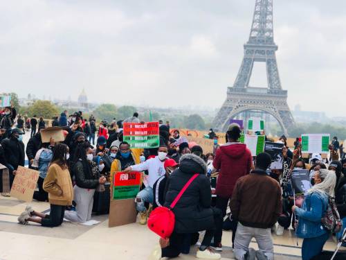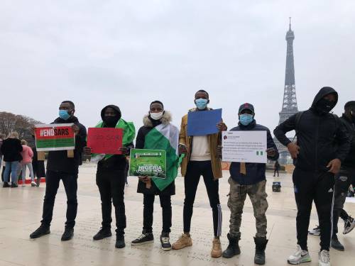 The #EndSARS protest in France has entered Day 2 as two popular Nigerian musicians in the country join the agitation.