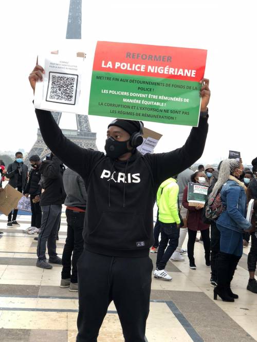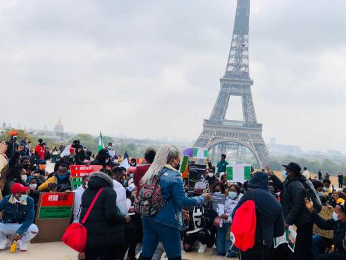 Earlier on Friday, the people while demonstrating in front of the Nigerian Embassy at the Victor Hugo area of Paris, called on the Inspector-General of Police, Mohammed Adamu, to immediately resign his position for overseeing a failed law enforcement agency.