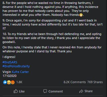 7. I hereby apologize to everybody who I’ve disappointed by my actions on Tuesday. This is a first for me and I’ve surely learnt my lessons. I’m really sorry.