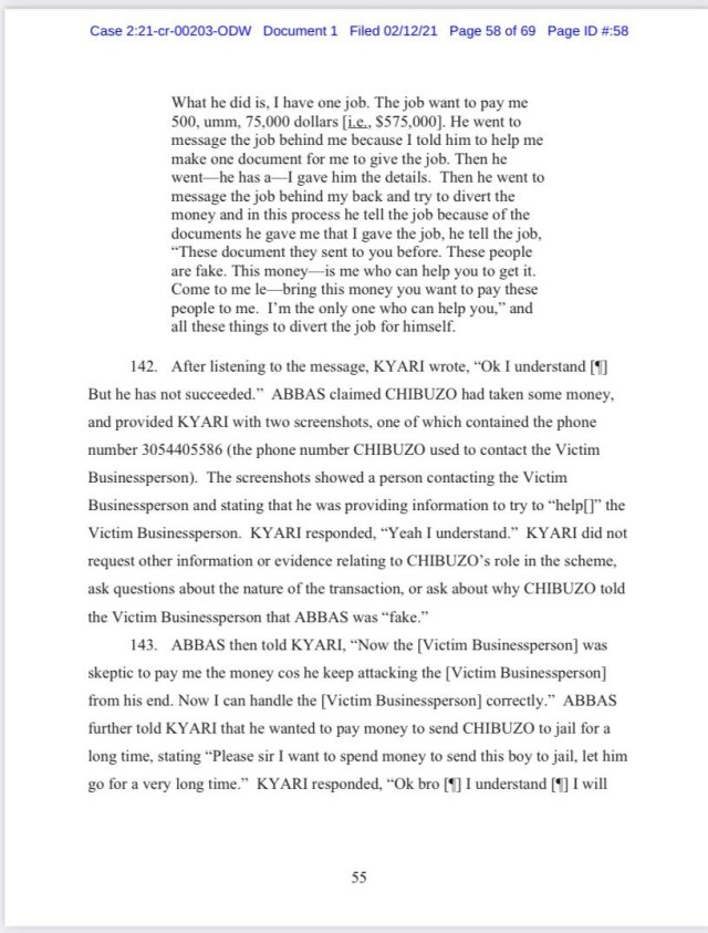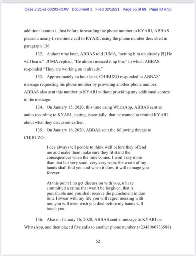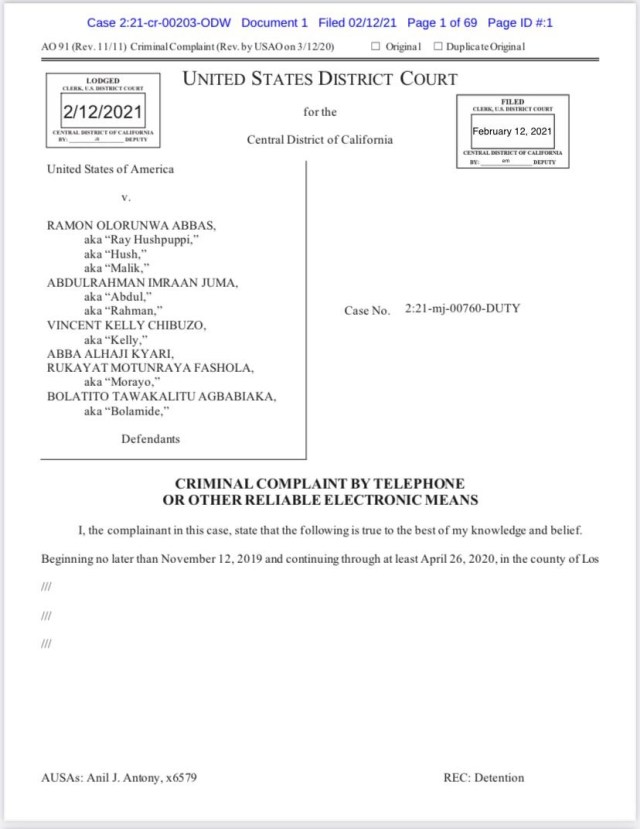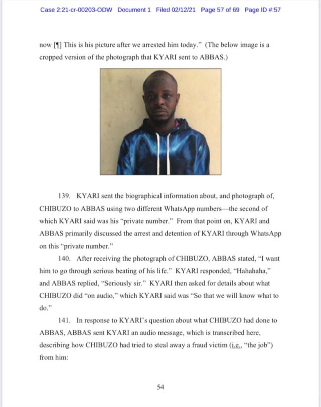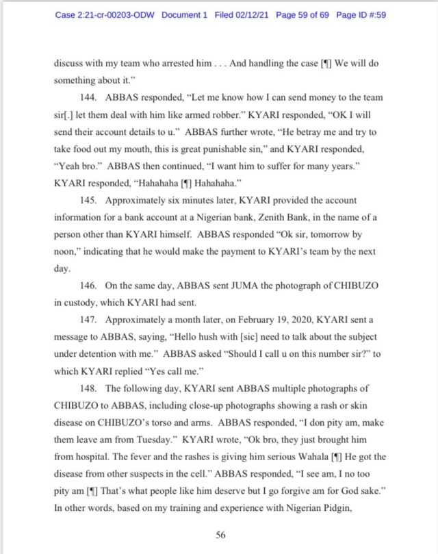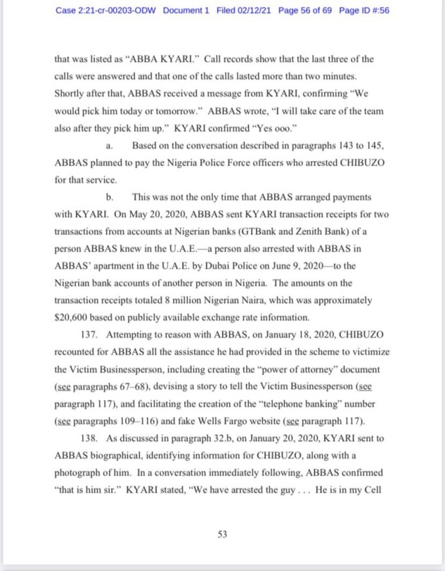 A document has now been released by Thom Mrozek, Director of Media Relations, United States Attorney’s Office to that effect after a press statement by the US Department of Justice noted Hushpuppi allegedly bribed Kyari to arrest a coconspirator, Kelly Chibuzo Vincent.